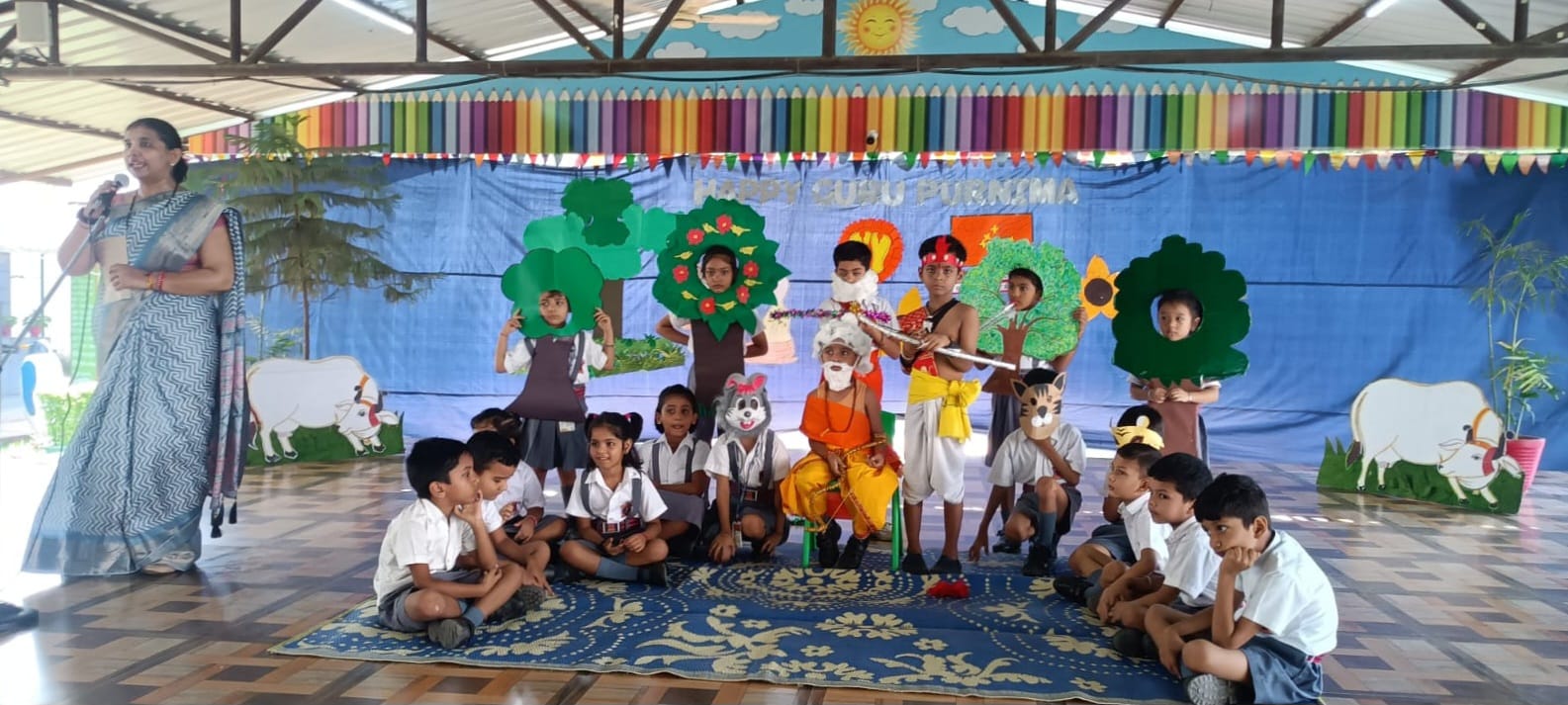 On the sacred occasion of Guru Purnima (10th July 2025), a soulful storytelling session was led by Ms. Vatsala Pandey and students of class Bv3A for the little learners of Balvatika.
